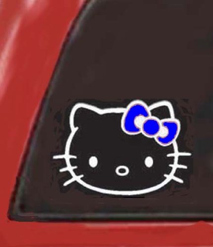 This HELLO KITTY with BLUE BOW Vinyl sticker is BLUE & WHITE and measures about 5.5\" wide. (The black background in the picture is NOT part of the sticker). These are tough vinyl stickers, NOT PRINTED, and they are car wash safe decals that look great on vehicle windows or bodies or stick them to any flat, smooth surface. After the sticker is adhered the top clear carrier plastic is removed leaving ONLY the die-cut sticker. No clear or white material remains. If you have any questions e-mail us at Bob and Judys Market through Amazon. Be sure and check out our Amazon store while you are here! Also, beware of some merchants who sell printed copies of our stickers that are far inferior in quality and craftsmanship. Be sure to buy stickers only from Bob and Judys Market on Amazon.